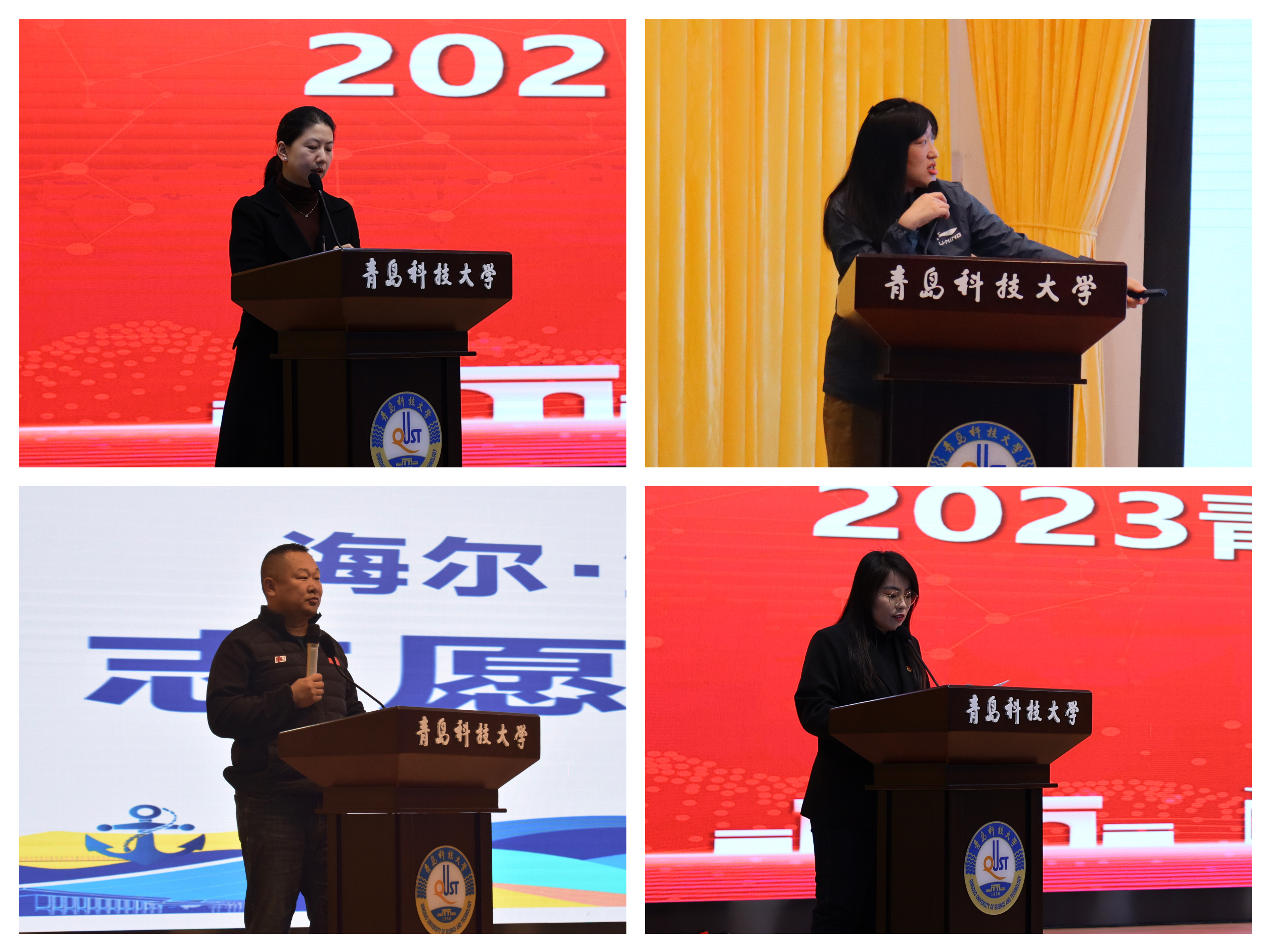 为全面提升2023青岛马拉松志愿者的专业技能和服务水平,4月1日,校团委联合团市委,在崂山校区第二报告厅、四方校区尚舜报告厅举办志愿者培训会。青岛团市委青年志愿者部负责人吴晓菲、青岛马拉松体育办公室主任刘荣、青岛马拉松体育赛事总监解文东、赛事总管徐相明出席会议,学校550名青年志愿者全部参与培训。