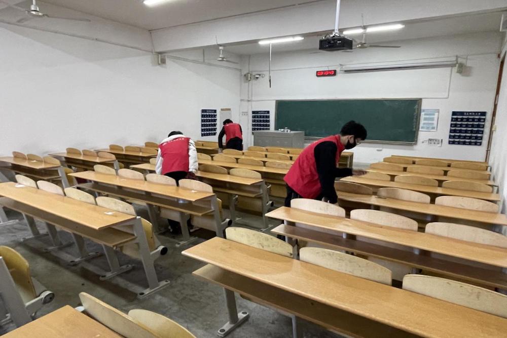 学生会组织学生骨干和青年学生志愿者开展“学雷锋 我先行”志愿服务活动。在崂山校区明德楼、弘毅楼和四方校区讲学厅、第二教学楼,志愿者们拿起清洁用具,认真地清扫教室地面,擦拭桌椅、擦黑板、倒垃圾,用实际行动彰显“全心全意服务同学”的宗旨。“一直以来,校学生会都将每年的学雷锋纪念日活动作为一项重点工作常态化、系统化开展,今年因为疫情无法出校开展志愿服务,所以我们就想从同学们身边的小事做起,真正的为同学办实事,用点滴行动践行雷锋精神,我们自身也在劳动中受教育、受启发。”校学生会执行主席丁一晟说。