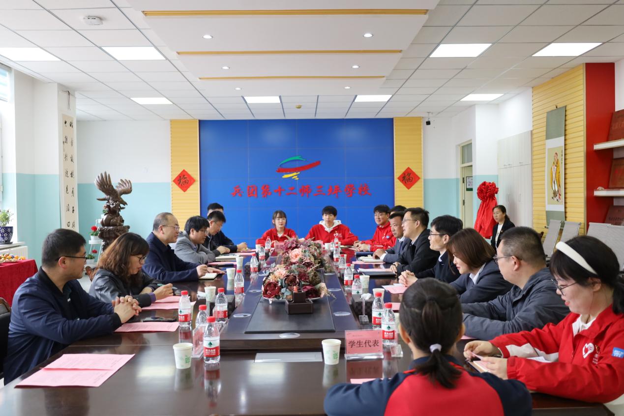 在新疆生产建设兵团第十二师调研期间,学校与新疆生产建设兵团第十二师三坪农场子女学校共建“大学生社会实践基地”,成立三坪农场子女学校“沙海”优秀学生奖学金并为获奖学生代表颁发证书。新疆生产建设兵团第十二师团委书记余雄杰,第十二师教育局党委委员、副局长扈航,三坪农场子女学校党支部书记王传奎、校长薛音陪同调研。